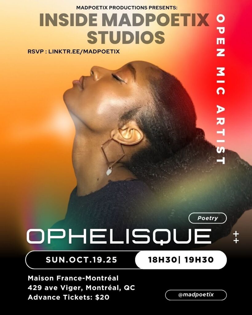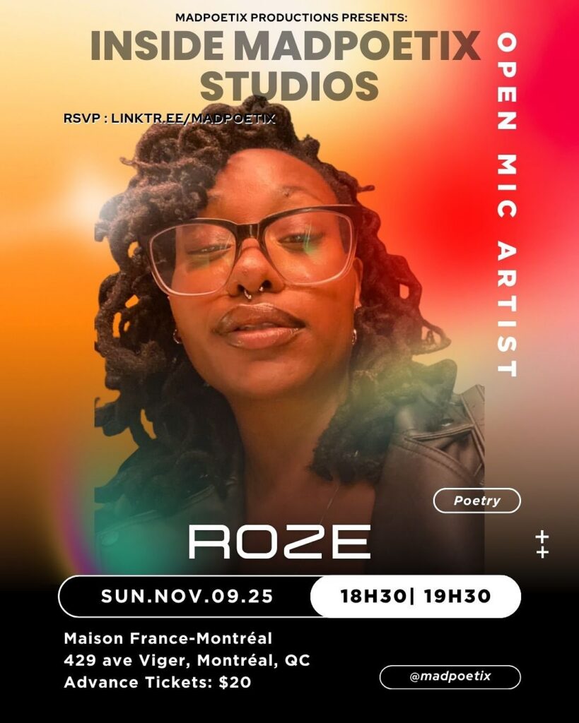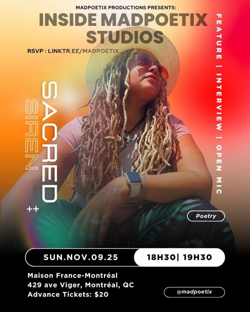 Madpoetix was conceived in a Montreal living room in 2004 by Kym Dominique-Ferguson and fellow poets. After officially launching in 2007 with the inaugural Art of Performing Aural Sex, the company evolved into a vital hub for Montreal’s spoken word scene.